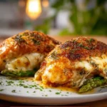 Delicious stuffed chicken breast filled with asparagus and mozzarella, perfect for any occasion.